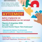 Παγκόσμια Ημέρα Ευαισθητοποίησης για τον Αυτισμό – Δράση στην Πλατεία Σάκη Καράγιωργα,…