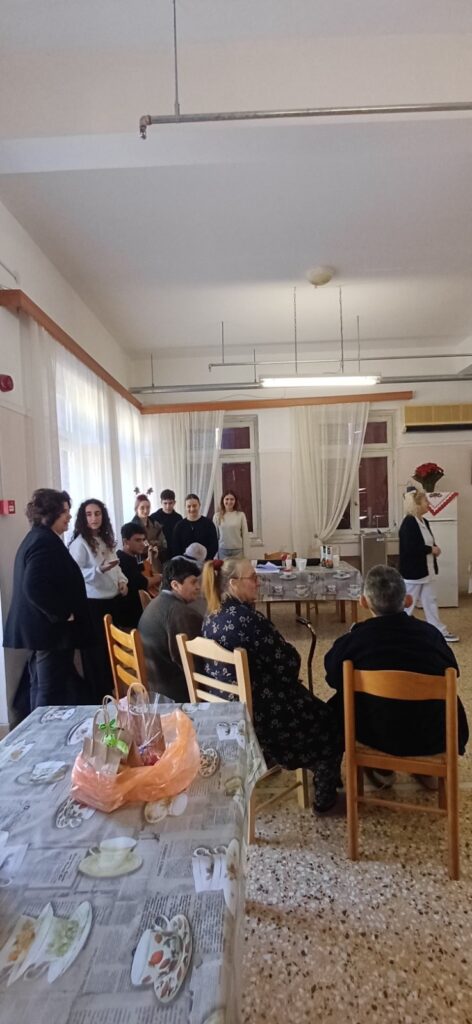 Οι μαθητές, συνοδευόμενοι από τους εκπαιδευτικούς του σχολείου, Μαρία  Μανδηλαρά και Παναγιώτα  Παναγιωτοπούλου, είχαν την ευκαιρία γνωρίσουν από κοντά τους ηλικιωμένους να συνομιλήσουν μαζί τους, να ανταλλάξουν εμπειρίες και να τους προσφέρουν μικρές χειροποίητες δημιουργίες.