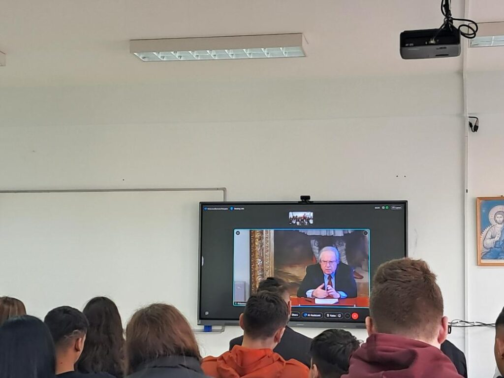Με ιδιαίτερη χαρά και τιμή, οι μαθητές του τμήματος Α2 του 1ου ΓΕΛ Πύργου είχαν την ευκαιρία να συμμετάσχουν σε μια μοναδική και άκρως ενδιαφέρουσα διαδικτυακή συνάντηση με τον Ομότιμο Καθηγητή Γλωσσολογίας του ΕΚΠΑ, πρώην Πρύτανη και Υπουργό Παιδείας, κύριο Γεώργιο Μπαμπινιώτη.