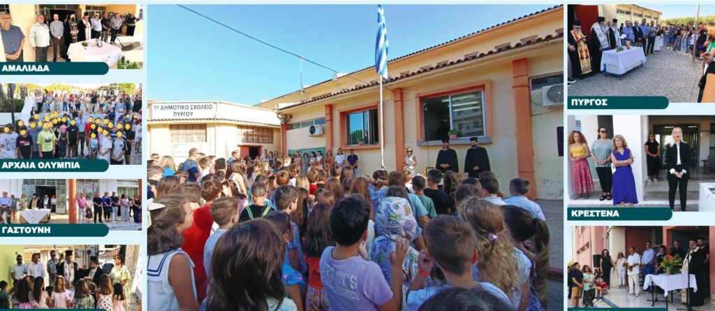 Τα προαύλια όλων των σχολείων της Ηλείας γέμισαν με χαρούμενες φωνές παιδιών, οι παλιοί συμμαθητές συναντήθηκαν ξανά, ενώ όπως πάντα την “παράσταση” έκλεψαν τα πρωτάκια του δημοτικού με την γνωστή αμηχανία τους καθώς για πρώτη φορά πήραν την γεύση του νέου σχολικού περιβάλλοντος ενός μεγαλύτερου σχολείου. Οι αγιασμοί τελέστηκαν από τους ιερείς της περιοχής και σε αρκετά σχολεία από τον Μητροπολίτη Ηλείας κ. Αθανάσιο, παρουσία εκπαιδευτικών, εκπροσώπων το κοινοβουλίου και των τοπικών δημοτικών και περιφερειακών αρχών, που ευχήθηκαν στους μαθητές μια καλή και γόνιμη σχολική χρονιά, καλώντας τους να αφιερώνουν λιγότερο χρόνο στο διαδίκτυο, να σέβονται τους συμμαθητές τους και κυρίως να μείνουν μακριά από φαινόμενα σχολικής βίας.
