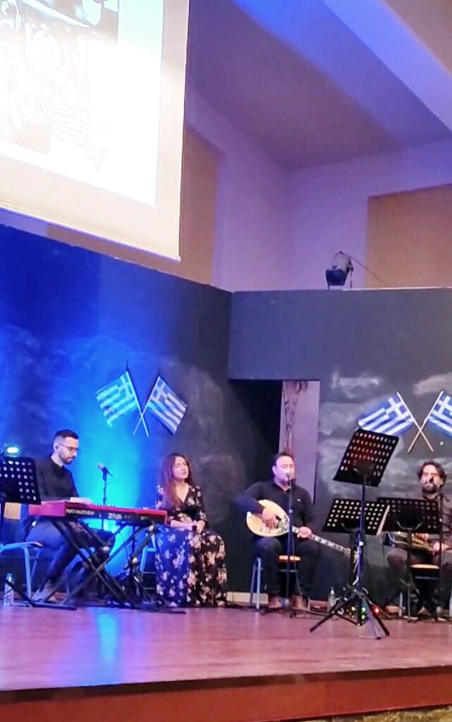 Παράλληλα, ακούστηκαν πολλές ενδιαφέρουσες πληροφορίες για την ιστορία των τραγουδιών και των δημιουργών τους από τους Εκπαιδευτικούς: Βασίλη Βασιλειάδη – Φωτεινή Λουκοπούλου – Ευγενία Πετροπούλου και από τη Ζωγράφο Νάνσυ Πετροπούλου.