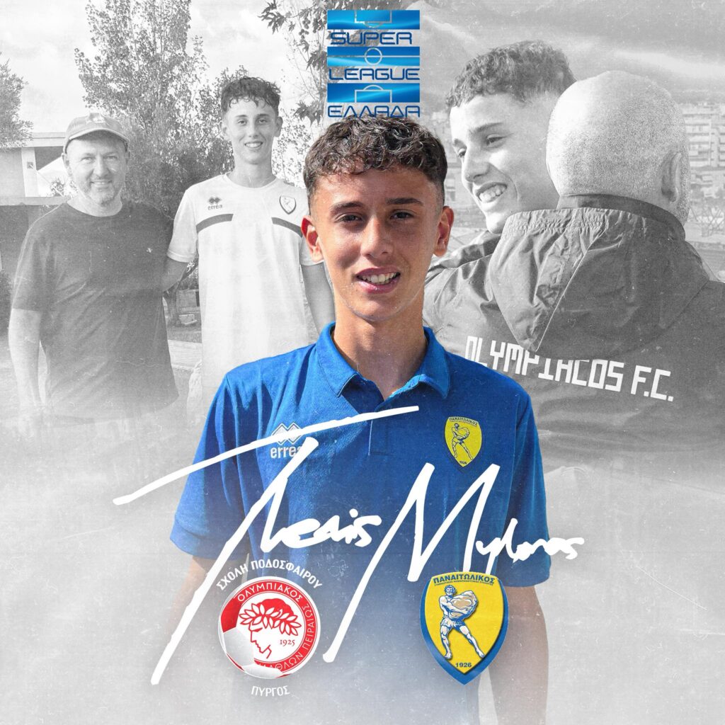 Ο 14χρονος Θεμιστοκλής (Θέμης) Μυλωνάς από τον Πλάτανο της Αρχ. Ολυμπίας πήρε μεταγραφή από την αξιόλογη ακαδημία του Ολυμπιακού Πειραιώς Πύργου του Τάσου Φερεκίδη στην ακαδημία του Παναιτωλικού, ομάδα της Super League 1. Ο Μυλωνάς, γιος του παλαίμαχου ποδοσφαιριστή Ευρυβιάδη Μυλωνά, αγωνίζεται ως στόπερ (όπως και ο πατέρας του), έχει πολύ καλή σωματοδομή (ύψος 1.80μ. στα 14 του) και πολύ καλά ατομικά χαρακτηριστικά, με εξαιρετική τεχνική κατάρτιση. Ο Θέμης Μυλωνάς μέσα από την σκληρή και καλή δουλειά υπό την επίβλεψη και καθοδήγηση του Τάσου Φερεκίδη και των άλλων προπονητών της ακαδημίας του Ολυμπιακού Πειραιώς Πύργου για 9 χρόνια, έκανε πλέον το άλμα για τον Παναιτωλικό και βλέπει τα όνειρά του να παίρνουν σάρκα και οστά. Άλλος ένας ποδοσφαιριστής από την ερυθρόλευκη ακαδημία που εξελίσσεται και ανεβαίνει επίπεδο, δείγμα της προσεγμένης δουλειάς που γίνεται.