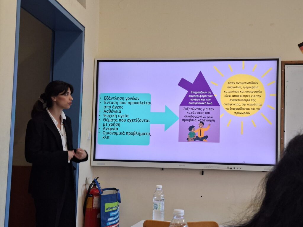 Την Παρασκευή, 16 Μαΐου 2025, και ώρες 19:00-20:30 μ.μ., σε συνεργασία με τον Σύλλογο Γονέων και Κηδεμόνων του Δημοτικού Σχολείου, τον Δήμο Αρχαίας Ολυμπίας και την Διεύθυνση Α’ βάθμιας Εκπαίδευσης, πραγματοποιήθηκε ενημερωτική εκδήλωση στο Δημοτικό Σχολείο Αρχαίας Ολυμπίας για επίκαιρα θέματα ψυχικής υγείας παιδιών, εφήβων και των οικογενειών τους, καθώς και για το περιεχόμενο και τη μεθοδολογία του Προγράμματος, από τον Ομότιμο Καθηγητή Γεράσιμο Κολαΐτη και τους συνεργάτες του.