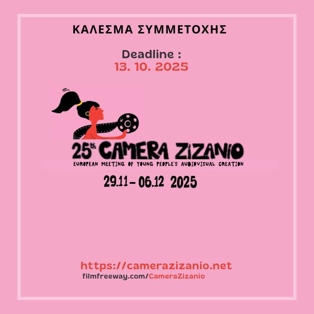 Για 25 ολόκληρα χρόνια είναι η καρδιά που χτυπά για τον νεανικό κινηματογράφο, η μεγαλύτερη Συνάντηση Νεανικής Οπτικοακουστικής Δημιουργίας. Στη φετινή επετειακή μας συνάντηση μ οι οι διοργανωτές της Cameras Zizanio σε καλούν να γίνεις μέρος αυτής της γιορτής. Στείλε μας την ταινία σου μέχρι τις 13 Οκτωβρίου.