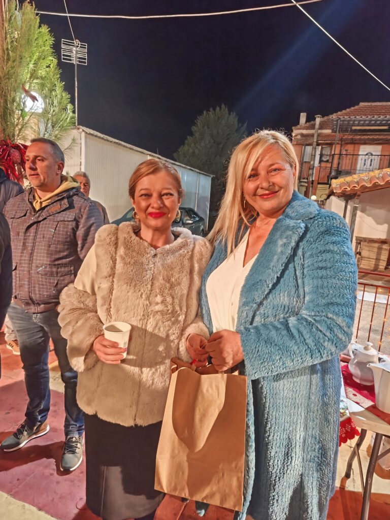 Η στιγμή που απογείωσε τον ενθουσιασμό ήταν η εμφάνιση του Άγιου Βασίλη, ο οποίος κατέφθασε φορτωμένος με δώρα, μοιράζοντας χαρά και εκπλήξεις σε όλα τα παιδιά. Παράλληλα, η πλατεία μοσχομύρισε από τα πλούσια κεράσματα που ετοίμασαν με μεράκι οι γυναίκες της Κοινότητας. Τα παραδοσιακά γλυκίσματα και τα σπιτικά εδέσματα πρόσφεραν μια γεύση αυθεντικής φιλοξενίας, κάνοντας κάθε επισκέπτη να νιώσει τη θαλπωρή των ημερών.