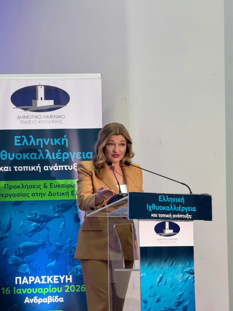 Το στίγμα της επόμενης ημέρας για την αναπτυξιακή πορεία της Ηλείας, μέσα από τη στρατηγική αξιοποίηση του θαλάσσιου πλούτου και την αρμονική συνύπαρξη επιχειρηματικότητας και περιβάλλοντος, έδωσε η Βουλευτής Ηλείας της Νέας Δημοκρατίας, Πρόεδρος της Επιτροπής Περιβάλλοντος της Βουλής, Δρ. Διονυσία-Θεοδώρα Αυγερινοπούλου, κατά την κεντρική ομιλία της στην Ημερίδα με τίτλο «Ελληνική Ιχθυοκαλλιέργεια και τοπική ανάπτυξη: Προκλήσεις & Ευκαιρίες συνεργασίας στην Δυτική Ελλάδα», που πραγματοποιήθηκε στο κατάμεστο Παλαιό Δημαρχείο Ανδραβίδας,. Η κα Αυγερινοπούλου ανέδειξε τη «Γαλάζια Οικονομία» ως τον κεντρικό πυλώνα ευημερίας, ανακοινώνοντας παράλληλα σημαντικά χρηματοδοτικά εργαλεία και στοχευμένες περιβαλλοντικές παρεμβάσεις.