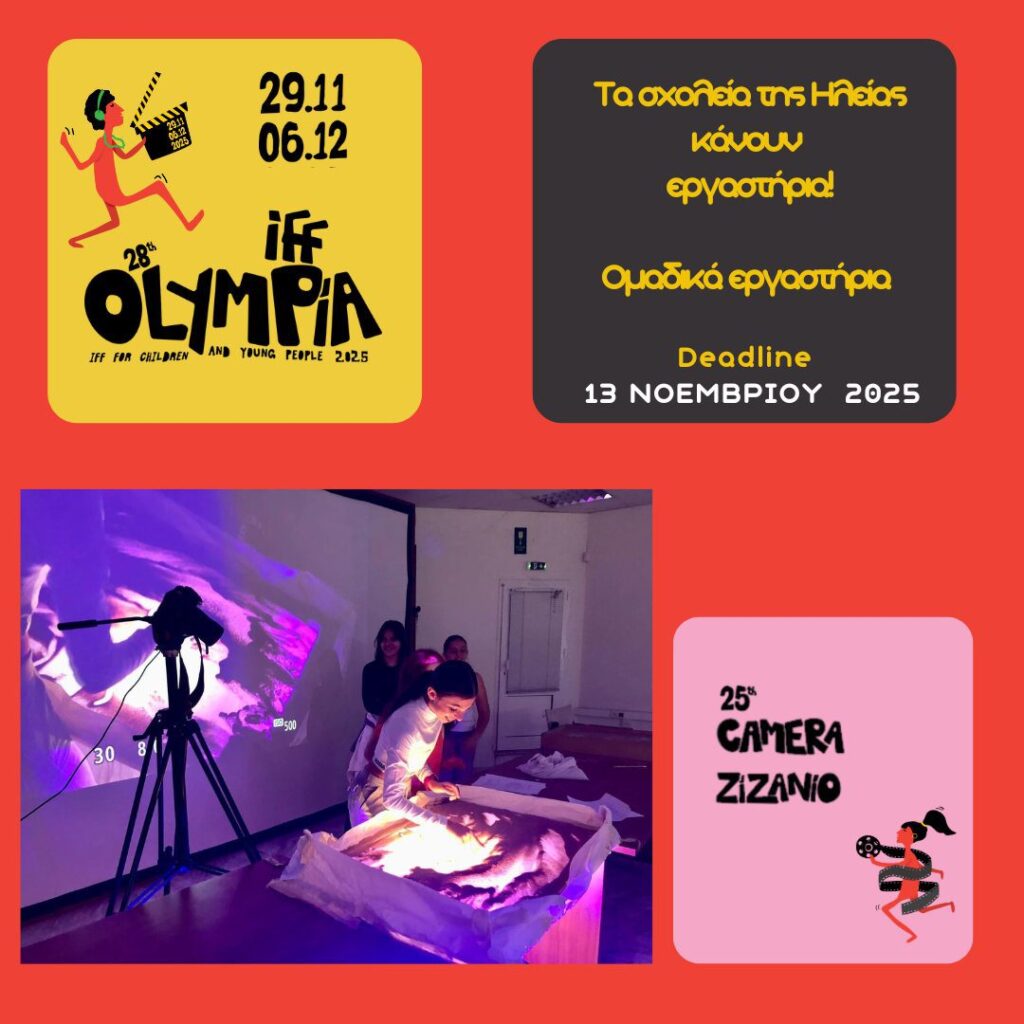 Όπως κάθε χρόνο, το Φεστιβάλ Ολυμπίας προσφέρει μια πλούσια σειρά δωρεάν κινηματογραφικών και καλλιτεχνικών εργαστηρίων, ειδικά σχεδιασμένων για τις σχολικές μονάδες του Πύργου, της Αμαλιάδας και των γύρω περιοχών!