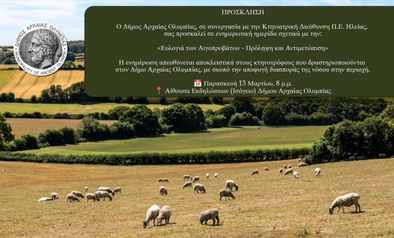 Η ενημέρωση απευθύνεται αποκλειστικά στους κτηνοτρόφους που δραστηριοποιούνται στον Δήμο Αρχαίας Ολυμπίας, με σκοπό την αποφυγή διασποράς της νόσου στην περιοχή.