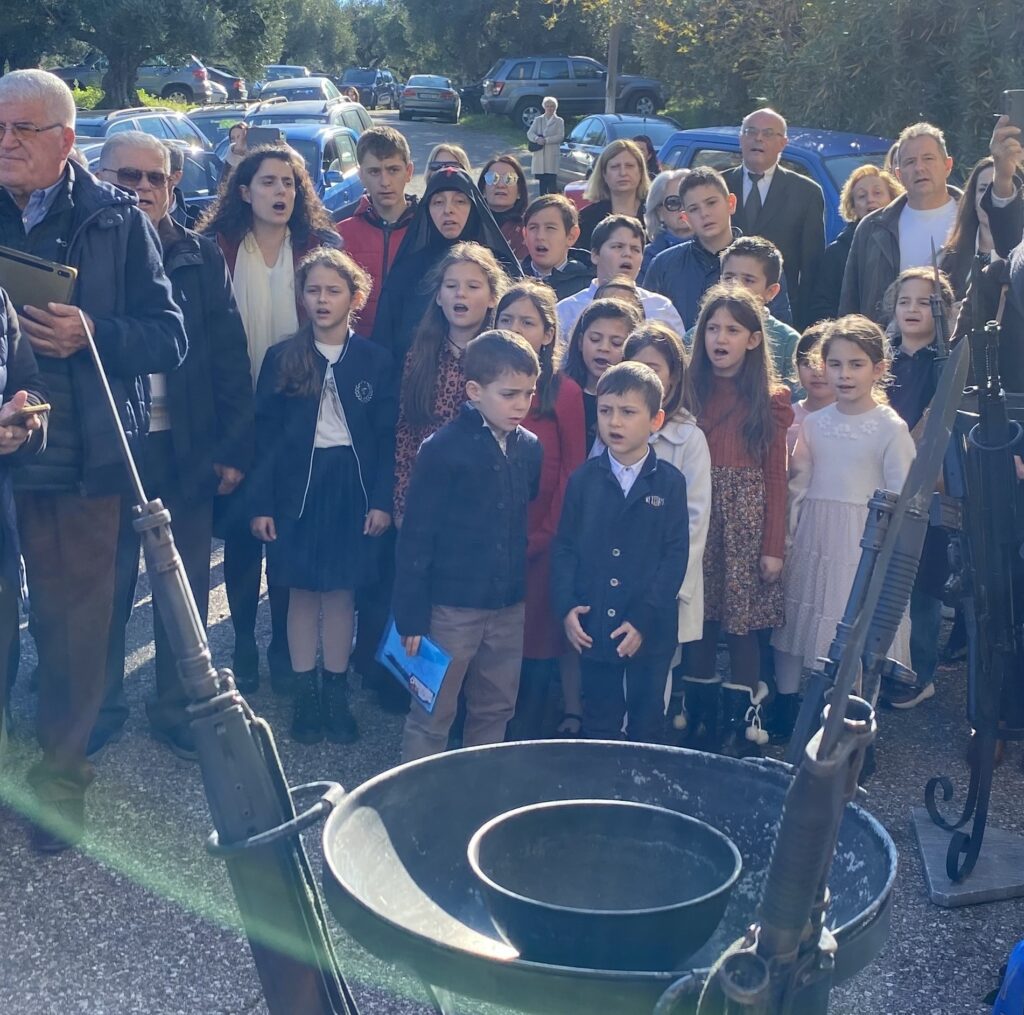 Η εκδήλωση ολοκληρώθηκε με την κατάθεση στεφανιών και την απόδοση του Εθνικού Ύμνου από τη χορωδία του Κατηχητικού Σχολείου, η οποία, μέσα σε μία συγκινησιακά φορτισμένη ατμόσφαιρα, παρουσίασε, ένα τραγούδι σχετικό με το ιστορικό αυτό γεγονός.