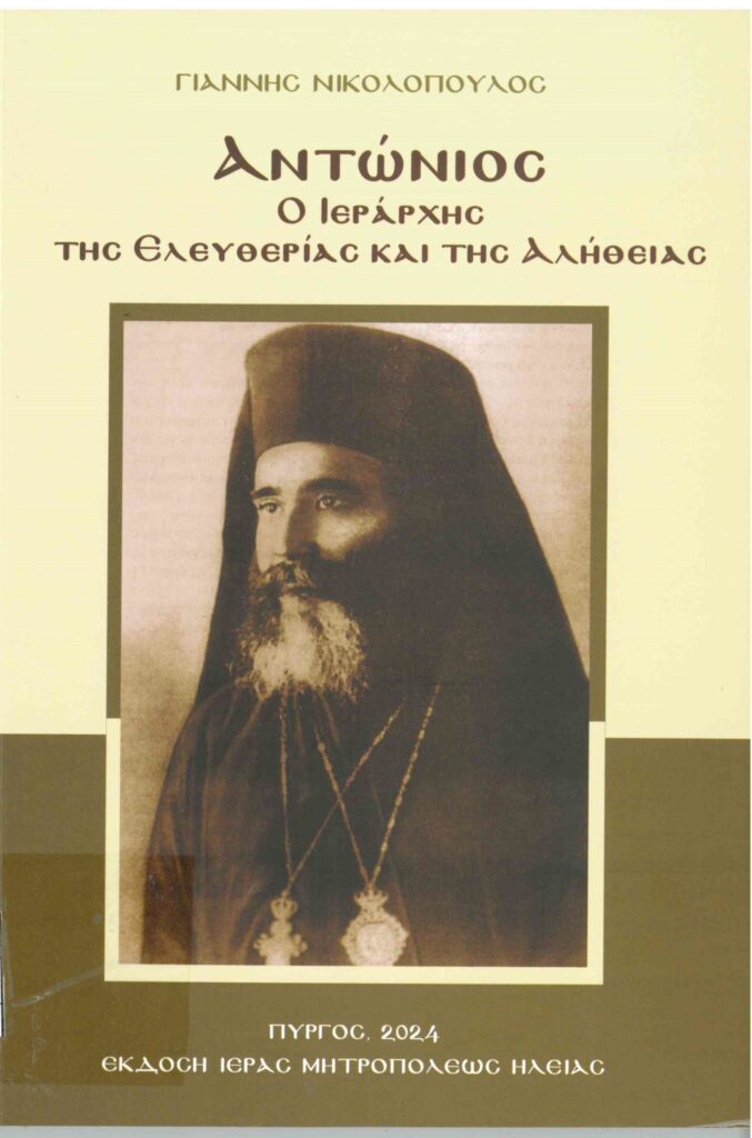 Το βιβλίο εκδόθηκε από την Ιερά Μητρόπολη Ηλείας. Ο Μητροπολίτης Αντώνιος υπήρξε μια ιστορική προσωπικότητα. Εποίμανε το λαό της Ηλείας 23 ολόκληρα χρόνια (1922 -1945). Είχε μεγάλη θεολογική παιδεία και σημαντικό συγγραφικό έργο.