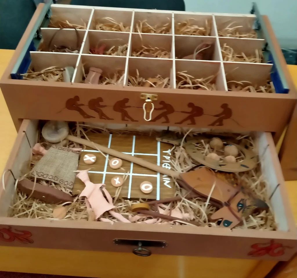Τα παιδιά είχαν την ευκαιρία να έρθουν σε επαφή με αρχαία παιχνίδια, δανεισμένα από το Αρχαιολογικό Μουσείο, που εντυπωσίασαν τους μικρούς συμμετέχοντες. Η συλλογή αυτών των παιχνιδιών έδωσε τη δυνατότητα στους μαθητές να ανακαλύψουν πώς διασκέδαζαν οι αρχαίοι Έλληνες και πώς το παιχνίδι αποτέλεσε πάντα σημαντικό κομμάτι της κοινωνίας και της εκπαίδευσης.
