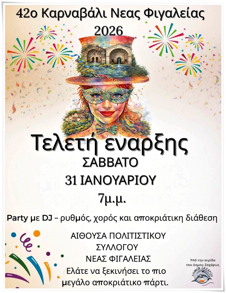 Η Καρναβαλική Επιτροπή του 42ου Καρναβαλιού Νέας Φιγαλείας προσκαλεί μικρούς και μεγάλους στην Τελετή Έναρξης των Αποκριάτικων Εκδηλώσεων και του Καρναβαλιού για το 2026. Η εκδήλωση θα πραγματοποιηθεί το Σάββατο 31 Ιανουαρίου 2026, στις 19:00, στο Κτήριο του Πολιτιστικού Συλλόγου Νέας Φιγαλείας.