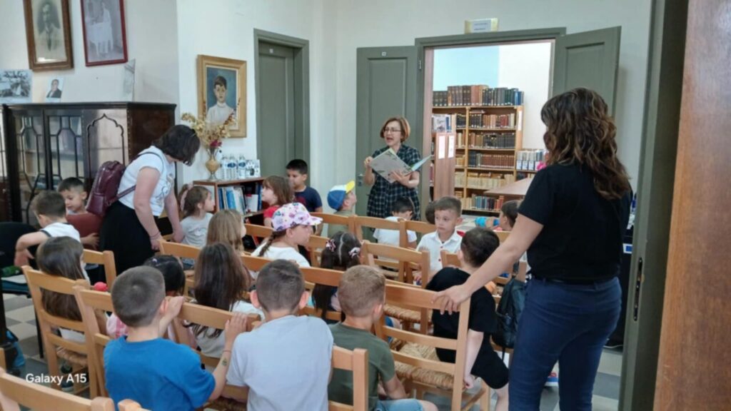 Η επίσκεψη ξεκίνησε με μια συζήτηση για την αξία του βιβλίου και της βιβλιοθήκης, όπου οι απαντήσεις των παιδιών εντυπωσίασαν: “Τα βιβλία μας κάνουν πιο έξυπνους”, “μας βοηθούν να γνωρίσουμε καλύτερα τον κόσμο”.