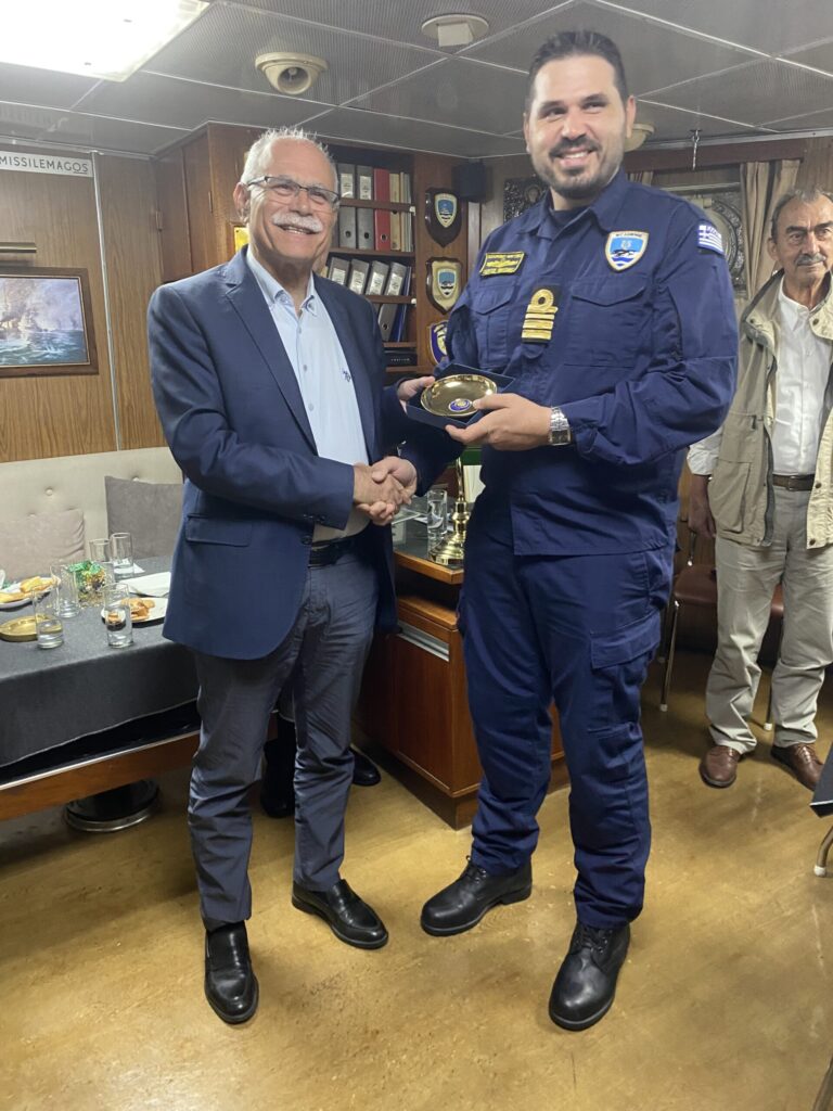 Ο Δήμαρχος Πύργου  επισκέφθηκε το «Λήμνος» και το «Ρίτσος» μαζί με τον Αντιδήμαρχο Οικονομικών, κ. Νίκο Θεοδώρου, τον Πρόεδρο του Δημοτικού Λιμενικού Ταμείου, κ. Κώστα Νικολούτσο, τον Πρόεδρο του Παραρτήματος Ηλείας της Ε.Α.Α.Ν., Πλοίαρχο ε.α κ. Ζώη Υφαντή Π.Ν., τον Σημαιοφόρο του Λιμενικού Σώματος, κ. Ανδρέα Τρυφωνόπουλο, το μέλος του Δ.Σ. της Ε.Α.Α.Ν. κ. Νίκο Σταθόπουλο, και τον κ. Άγγελο Παναγιωτακόπουλο, σύμβουλο του Δ.Λ.Τ. Πύργου για θέματα ασφαλείας του Λιμανιού.