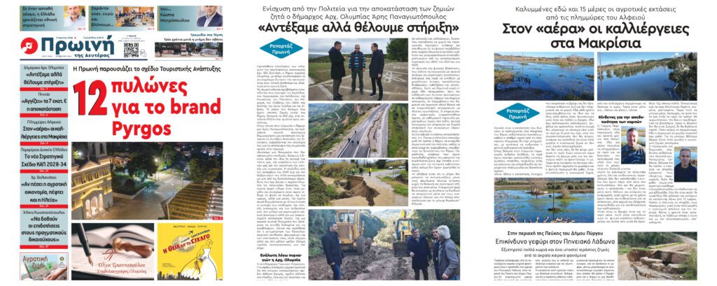 ΑΦΟΙ ΡΗΓΑ ΕΚΔΟΤΙΚΗ Α.Ε.Ε ΠΡΩΙΝΗ Α.Ε. ΑΦΜ: 099735700, ΔΟΥ ΠΥΡΓΟΥ Ρήγα Φεραίου 111, Πύργος — 26210 81235 — sales@proini.news Νόμιμος Εκπρόσωπος: Γεωργία Ρήγα Διευθυντής: Ιωάννης Ρήγας Διαχειριστής: Ηρώ Ρήγα Δικαιούχος Ονόματος Τομέα (Domain Name): Ιωάννης Ρήγας