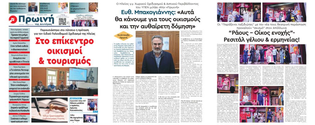 ΑΦΟΙ ΡΗΓΑ ΕΚΔΟΤΙΚΗ Α.Ε.Ε ΠΡΩΙΝΗ Α.Ε. ΑΦΜ: 099735700, ΔΟΥ ΠΥΡΓΟΥ Ρήγα Φεραίου 111, Πύργος — 26210 81235 — sales@proini.news Νόμιμος Εκπρόσωπος: Γεωργία Ρήγα Διευθυντής: Ιωάννης Ρήγας Διαχειριστής: Ηρώ Ρήγα Δικαιούχος Ονόματος Τομέα (Domain Name): Ιωάννης Ρήγας