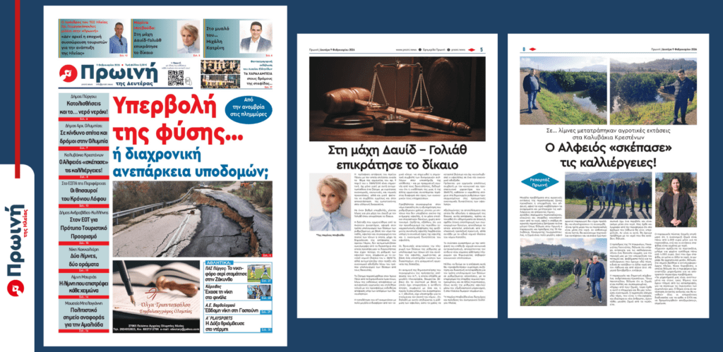 ΑΦΟΙ ΡΗΓΑ ΕΚΔΟΤΙΚΗ Α.Ε.Ε ΠΡΩΙΝΗ Α.Ε. ΑΦΜ: 099735700, ΔΟΥ ΠΥΡΓΟΥ Ρήγα Φεραίου 111, Πύργος — 26210 81235 — sales@proini.news Νόμιμος Εκπρόσωπος: Γεωργία Ρήγα Διευθυντής: Ιωάννης Ρήγας Διαχειριστής: Ηρώ Ρήγα Δικαιούχος Ονόματος Τομέα (Domain Name): Ιωάννης Ρήγας