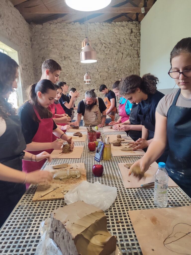 Έτσι λοιπόν, στο πλαίσιο του project ” γνωρίζω τη γειτονιά μου”  τα παιδιά συνοδευόμενα απο την Δ/νρια του  Γυμνασίου Αρχαίας Ολυμπίας, την πρώτη μέρα επισκέφθηκαν το εργαστήριο γλυπτικής smili Art Workshop “. Ο γλύπτης Αλέξανδρος Παπαλάμπρος τους υποδέχθηκε με χαρά και  εξήγησε στους μαθητές μερικά από τα μυστικά της τέχνης της μαρμαρογλυπτικής.  Παράλληλα, τους έδωσε  την ευκαιρία να πειραματιστούν με τον πηλό και να ξεδιπλώσουν τα καλλιτεχνικά τους ταλέντα, όπου συμμετείχαν σε ένα δωρεάν εικαστικό εργαστήριο που τους εντυπωσίασε.