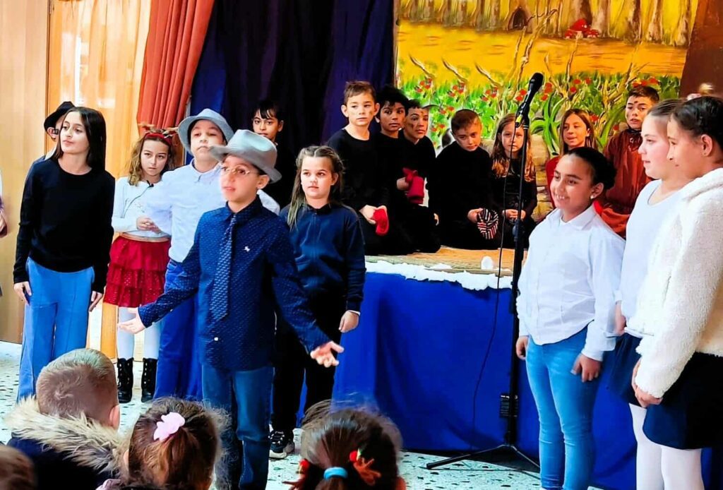 Το μουσικό χριστουγεννιάτικο παραμύθι των Χάρη και Πάνου Κατσιμίχα «Η Αγέλαστη Πολιτεία και οι Καλικάντζαροι», παρουσίασαν τα παιδιά του Δημοτικού Σχολείου Επιταλίου, στη Χριστουγεννιάτικη γιορτή τους.