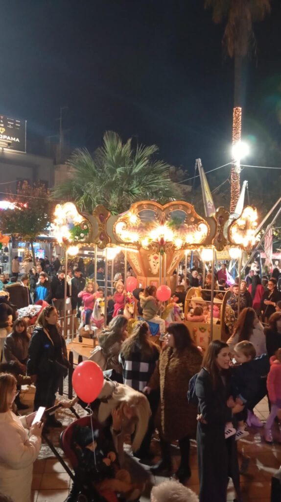 Η βραδιά πλαισιώθηκε από μουσική, θεατρικά και διαδραστικά δρώμενα, παραδοσιακά κάλαντα, δημιουργικές χριστουγεννιάτικες δραστηριότητες και εντυπωσιακά οπτικά εφέ και πυροτεχνήματα, που μετέτρεψαν την πλατεία σε έναν ζωντανό γιορτινό χώρο.