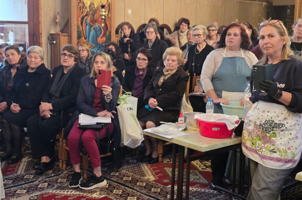 Κατά την διάρκεια αυτής της τόσο ενδιαφέρουσας και αξιόλογης εκδήλωσης, ο εφημέριος του Ιερού Ναού π. Νικόλαος Κατσηδήμας, απηύθυνε σύντομη ομιλία, αναφερόμενος στη βαθιά πνευματική σημασία του Προσφόρου, καθώς επίσης στους Ιερούς συμβολισμούς του αλλά και στη θέση που κατέχει στη ζωή της Αγίας μας Εκκλησίας.