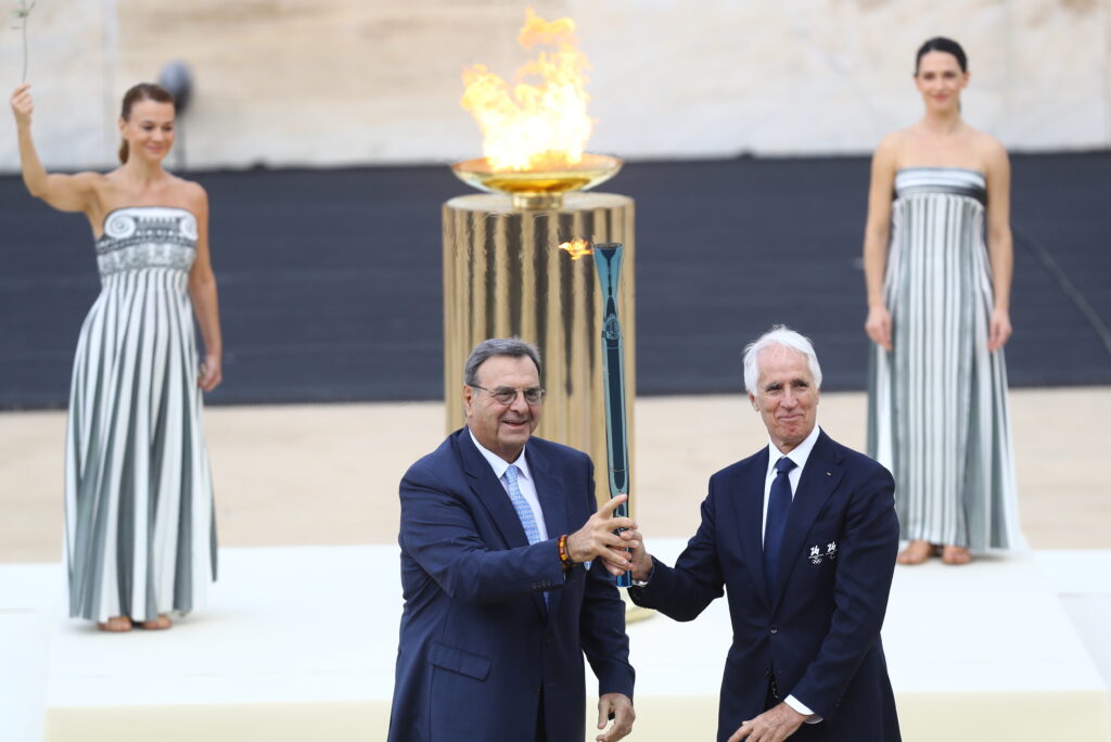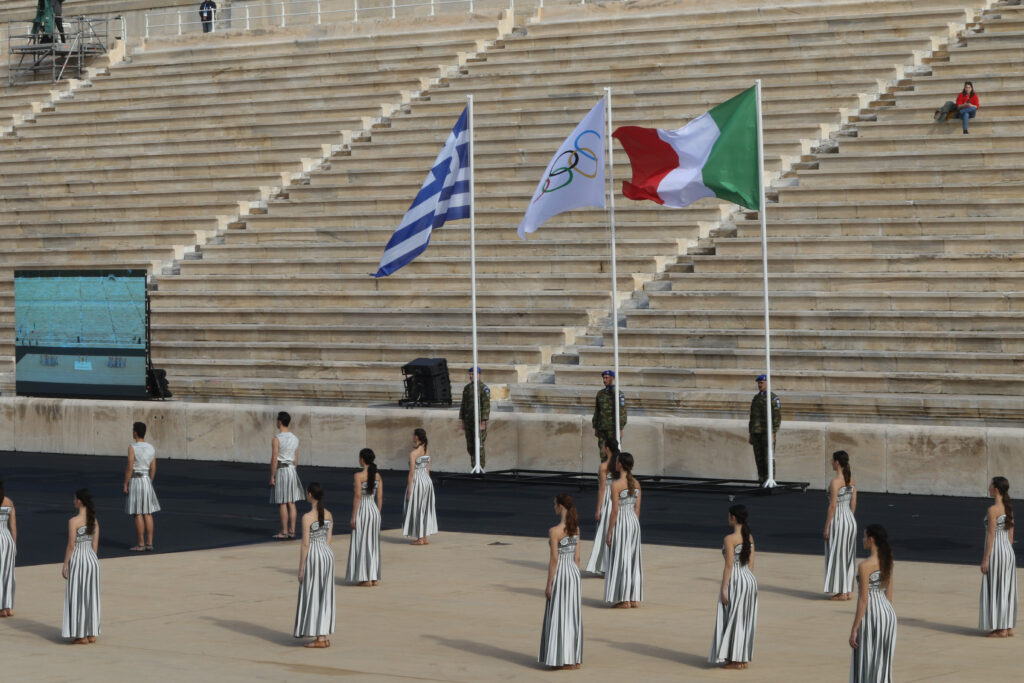 ΤΕΛΕΤΗ ΠΑΡΑΔΟΣΗΣ ΤΗΣ ΦΛΟΓΑΣ ΣΤΓΟ ΠΑΝΑΘΗΝΑΙΚΟ ΣΤΑΔΙΟ ΓΙΑ ΤΟΥΣ ΧΕΙΜΕΡΙΝΟΥΣ ΟΛΥΜΠΙΑΚΟΥΣ ΑΓΩΝΕΣ MILANO CORTINA 2026 (ΜΑΡΚΟΣ ΧΟΥΖΟΥΡΗΣ / EUROKINISSI)