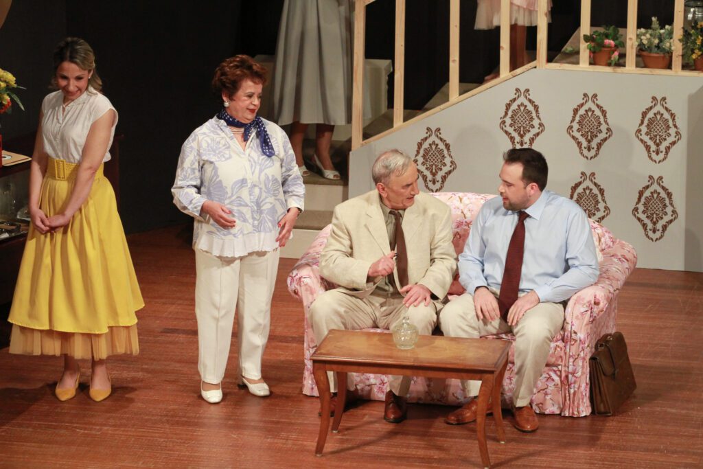 Πραγματικά η «θεία» ήταν ο ρόλος που «κούμπωσε» 100% πάνω στην Ευρυδίκη Γερασιμοπούλου όπως και εκείνος του έμπειρου και απολαυστικού Γιάννη Μανώλη ως του συντηρητικού πάτερ φαμίλια Χαρίλαου, δύο πρωταγωνιστικοί ρόλοι – κλειδιά της παράστασης, που «καθρέφτιζε» την αλλαγή των παραδοσιακών αξιών, ηθών, συμπεριφορών, αισθητικών γούστων και του τρόπου ζωής των μικροαστών, στην συντηρητική μετεμφυλιακή ελληνική κοινωνία.