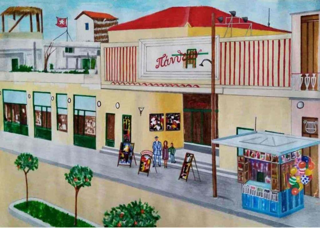 “Θεωρώ αναγκαίο να σημειώσω ότι οι φωτογραφίες με τις ακουαρέλες μου, απεικονίζουν η μεν πρώτη το κέντρο του Πύργου γύρω στο 1970 και αναπαράγοντας στην ουσία μιά καταπληκτική φωτογραφία του εξαιρετικού και αλησμόνητου φωτογράφου Αντώνη Τσελεπή, ενώ η δε δεύτερη, τον κινηματογράφο Πάνθεον (περίπου την ίδια εποχή, ή λίγο νωρίτερα) στην Αμαλιάδα, από ασπρόμαυρη φωτογραφία που κυκλοφορεί σε ιντερνετική ομάδα της Αμαλιάδας. Και στις δύο φωτό διακρίνονται περίπτερα της εποχής, με το χαρακτηριστικό χρώμα τους.”