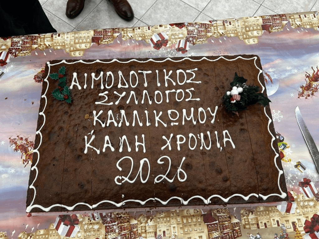 Ο πρόεδρος του Συλλόγου Αιμοδοτών Καλλικώμου κ. Πέτρος Σταματελόπουλος ευχήθηκε χρόνια πολλά και καλή χρονιά σε όλους, αναφερόμενος συγχρόνως στις προσπάθειες που αποσκοπούν στην εξυπηρέτηση του συνόλου, μέσω της εθελοντικής προσφοράς αίματος.
