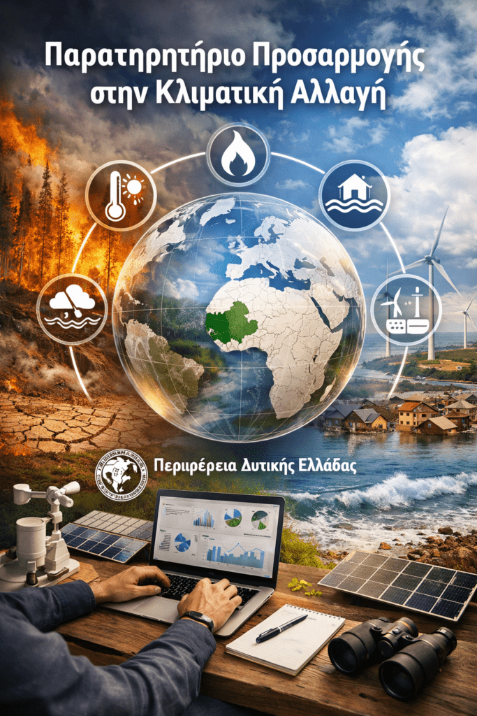 Παρατηρητήριο Προσαρμογής στην Κλιματική Αλλαγή θα ιδρύσει η Περιφέρεια Δυτικής Ελλάδας, με στόχο τη συλλογή και την επεξεργασία πληροφοριών που θα συμβάλουν στην προσαρμογή της Περιφέρειας στα νέα δεδομένα.
