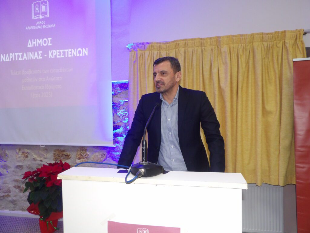 Μέσα σε χαρούμενο κλίμα έγινε το Σάββατο 3 Ιανουαρίου 2026,στο χώρο της πρώην Μαθητικής Εστίας Κρεστένων, η εκδήλωση βράβευσης των εισαχθέντων μαθητών του Δήμου Ανδρίτσαινας – Κρεστένων στα Ανώτατα Εκπαιδευτικά Ιδρύματα.