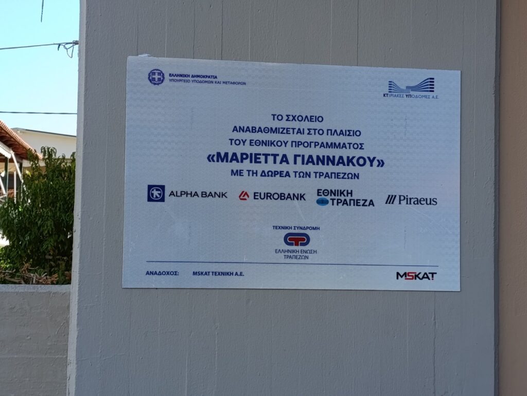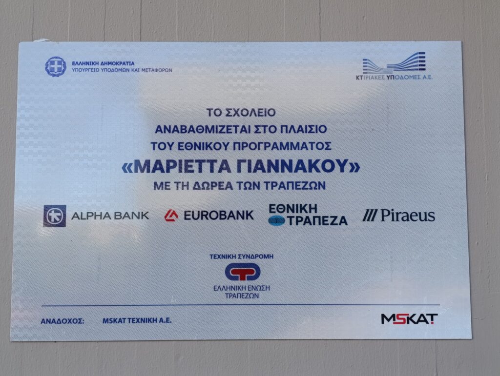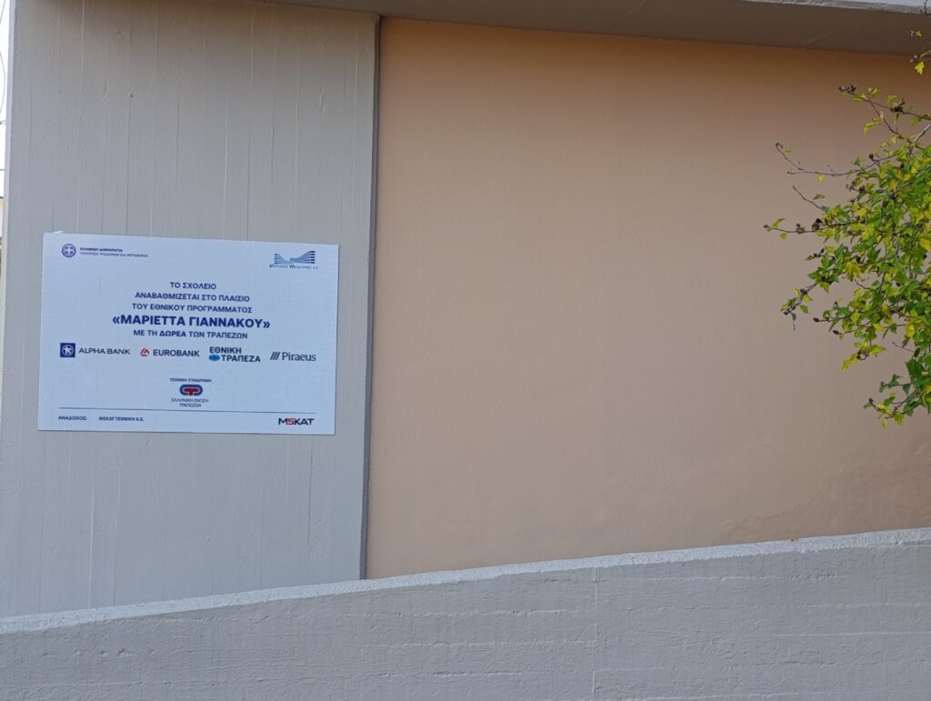 Στα τρία σχολεία που αναβαθμίστηκαν με το πρόγραμμα «ΜΑΡΙΕΤΤΑ ΓΙΑΝΝΑΚΟΥ», τοποθετήθηκε πλακέτα που αναγράφει ότι πραγματοποιήθηκε με τη «ΔΩΡΕΑ ΤΩΝ ΤΡΑΠΕΖΩΝ» και ακολουθούν οι ονομασίες τους!