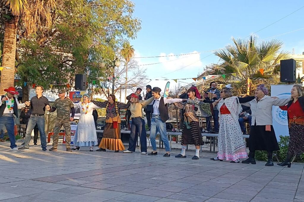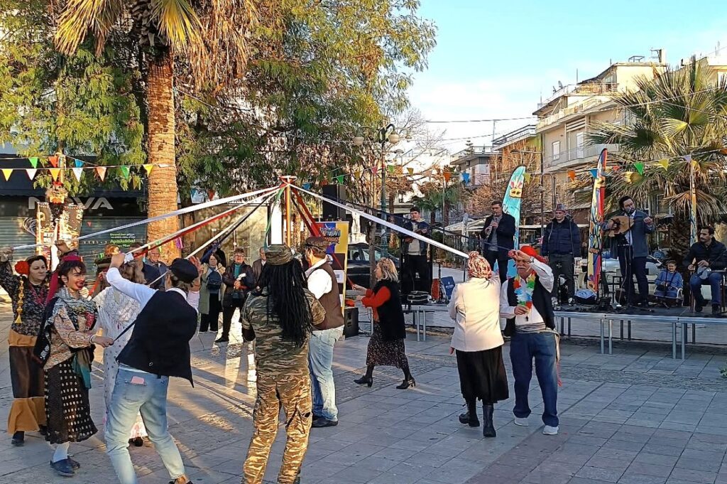 Η αυλαία του διημέρου άνοιξε το απόγευμα του περασμένου Σαββάτου στην Πλατεία Αγίου Αθανασίου. Οι πολιτιστικοί σύλλογοι του Δήμου, μέσα από μια εξαιρετική συνεργασία, παρουσίασαν σειρά καρναβαλικών δρώμενων και χορών, με το παραδοσιακό «γαϊτανάκι» να κλέβει τις εντυπώσεις.