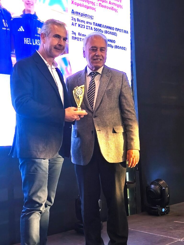 Ο Αναπληρωτής Δημάρχου Πύργου Νώντας Κυριαζής βράβευσε τον προπονητή Μπ. Ποσονίδη.