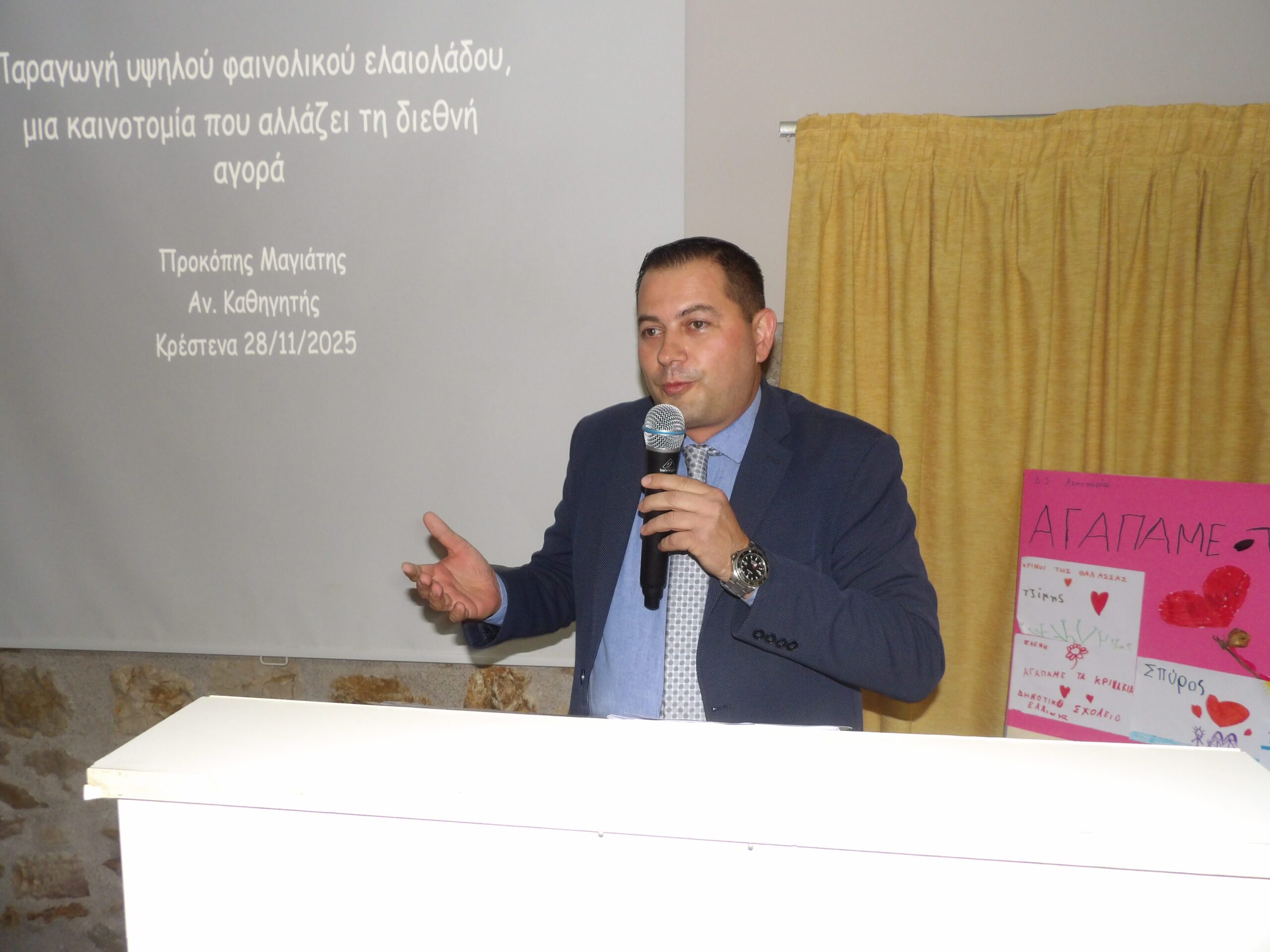 Τεράστιο ενδιαφέρον εξάλλου παρουσίασε η τοποθέτηση του επίκουρου Καθηγητή στον τομέα Φαρμακογνωσίας και Χημείας Φυσικών Προϊόντων της Φαρμακευτικής Σχολής του Πανεπιστημίου Αθηνών κ. Προκόπιου Μαγιάτη, που έχει συνδέσει το όνομά του με την παγκόσμια ανάδειξη της αξίας του ελληνικού ελαιόλαδου.