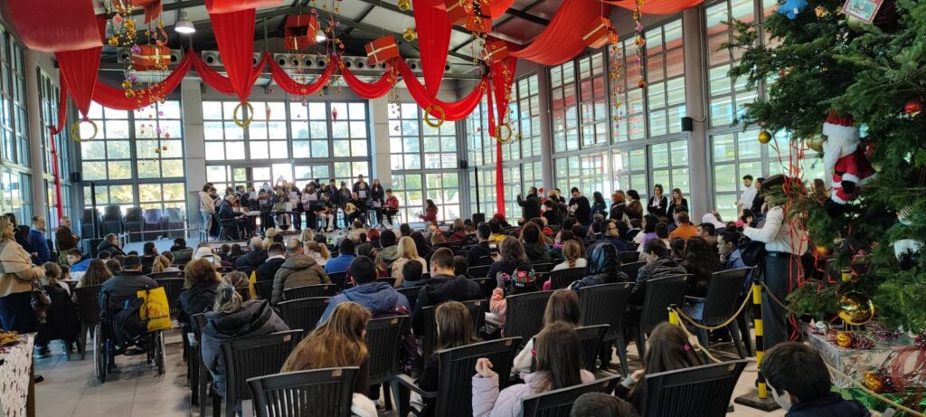 Η μεγάλη αίθουσα εκδηλώσεων του Πάρκου «πλημμύρισε» από χαρά και ενθουσιασμό. Η χριστουγεννιάτικη «Γιορτή Αγάπης» που διοργάνωσε με επιτυχία η Δημοτική Κοινότητα Πύργου για τα σχολεία και τους φορείς ΑμεΑ, ήταν ένα πραγματικό μάθημα ζωής. Οι χώροι του πάρκου πλημμύρισαν με παιδικές και νεανικές φωνές, γέλια και μια ανυπομονησία που «έσπαγε» το κρύο του Δεκέμβρη. Μαθητές από τα Σχολεία ΑμεΑ, μέλη των ΚΔΑΠ και εκπρόσωποι των Συλλόγων της περιοχής έγιναν οι πρωταγωνιστές μιας ημέρας που τους ανήκε ολοκληρωτικά.