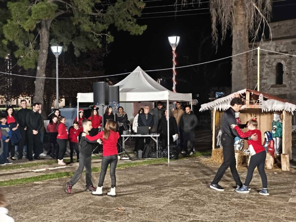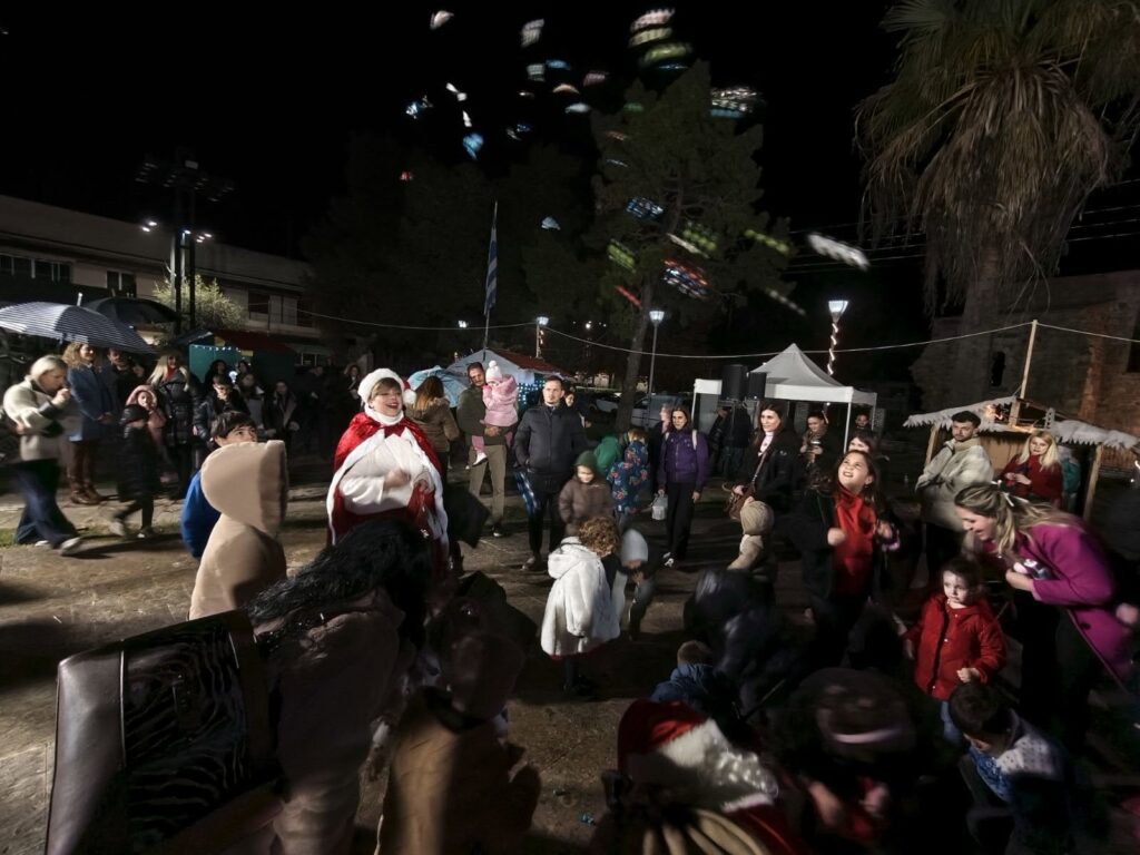 ​Στη συνέχεια, η δράση μεταφέρθηκε στην κεντρική πλατεία, η οποία ξεσηκώθηκε από τους εκρηκτικούς Latin ρυθμούς της Dance Sport Academy, υπό την επιμέλεια των Δημήτρη και Αλέξη Καπατσούλια και της Χριστίνας-Μαρίνας Νάκου. Η αγωνία των μικρών μας φίλων έφτασε στο τέλος της όταν ο Άγιος Βασίλης έκανε την εντυπωσιακή του εμφάνιση μοιράζοντας δώρα και χαρά, ενώ την άφιξή του συνόδευσε ένα φαντασμαγορικό σόου βεγγαλικών του Κωνσταντίνου Χαντζή που φώτισε τον ουρανό της πόλης.