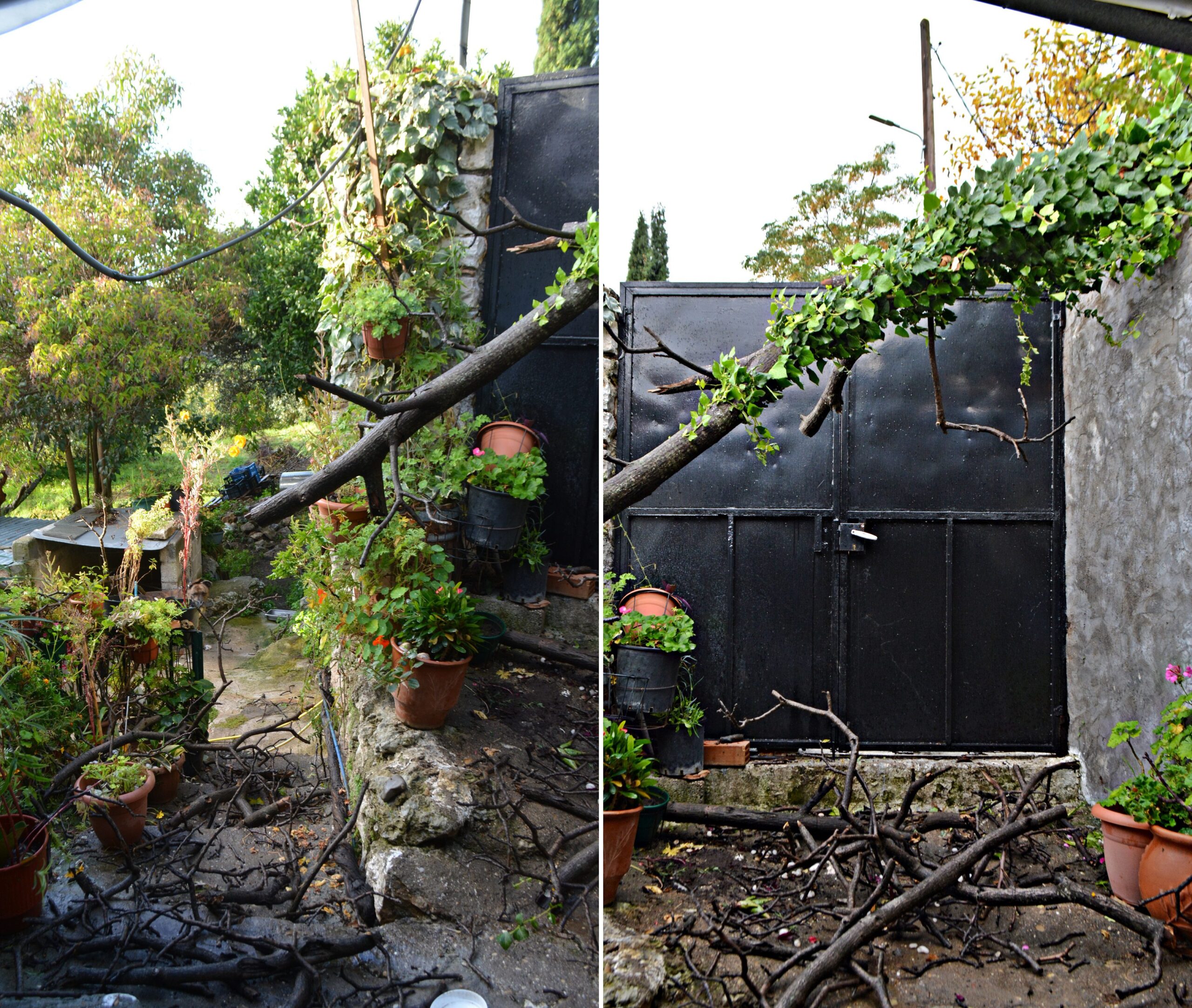 Πάνω από την συγκεκριμένη οικία υπάρχουν καρυδιές πολλών μέτρων αλλά λόγω μικροβίου έχουν σαπίσει εδώ και 1 χρόνο. Οι ιδιοκτήτες ενημέρωσαν τον Απρίλιο του 2024 τις τεχνικές υπηρεσίες και τον αρμόδιο Αντιδήμαρχο του Δήμου Ζαχάρως ώστε να ενημερώσουν με τη σειρά τους, όπως ορίζει η νομοθεσία, τον ιδιοκτήτη του οικοπέδου για την κοπή τους. Ο δήμος ωστόσο δεν ανταποκρίθηκε ποτέ.
