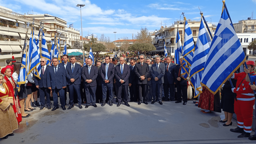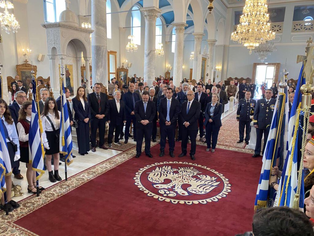 Το πρωί της Τετάρτης, 25 Μαρτίου 2026, τελέστηκε η καθιερωμένη δοξολογία στον Ιερό Ναό Αγίου Νικολάου, χοροστατούντος του Σεβασμιότατου Μητροπολίτη Ηλείας και Ωλένης κ.κ. Αθανασίου. Στη συνέχεια, πραγματοποιήθηκε επιμνημόσυνη δέηση και κατάθεση στεφάνων στο Ηρώο της Κεντρικής Πλατείας, παρουσία εκπροσώπων των αρχών και πλήθους κόσμου.
