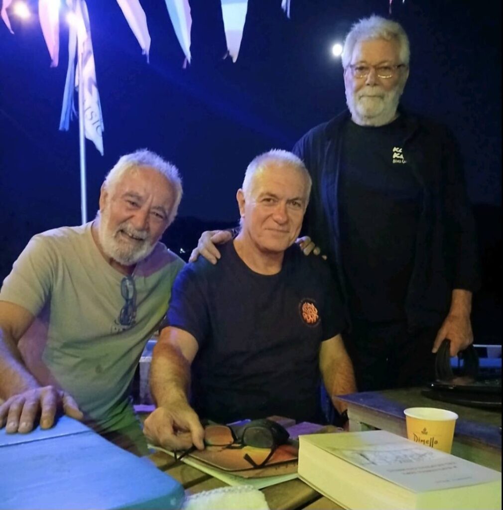 O Γιάννης Βίτσας μαζί με τον Γιώργο Γούναρη και Αντρέα Κοπτερίδη (δεξιά) που είναι ο εμπνευστής κ οικοδεσπότης της Πολυπολιτιστική Γωνιά Κολωνάκι στους Κρουνούς.