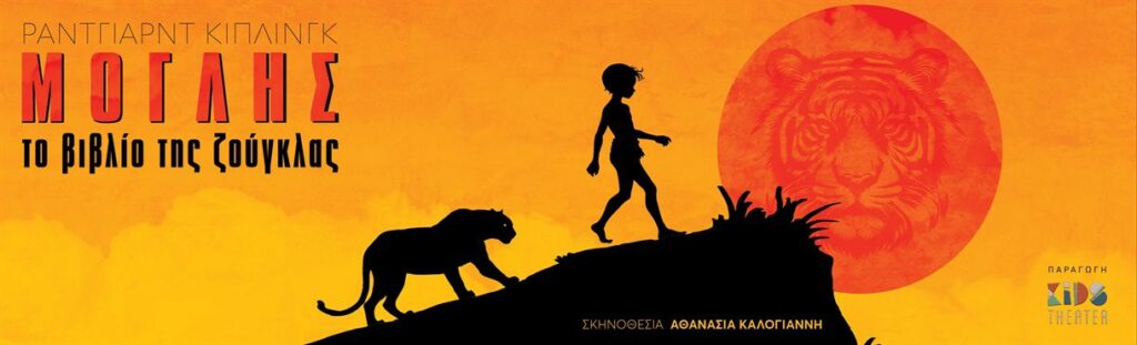 Η θεατρική διασκευή της γνωστής περιπέτειας ζωντανεύει στη σκηνή μέσα από μια παράσταση γεμάτη δράση, μουσική, χορό και συγκίνηση, που απευθύνεται σε όλη την οικογένεια. Ο μικρός Μόγλης, μεγαλωμένος ανάμεσα στους λύκους, προσπαθεί να ανακαλύψει την αληθινή του ταυτότητα, θέτοντας ερωτήματα για τη διαφορετικότητα, τη φιλία, τη συνεργασία και την αγάπη για τη φύση.