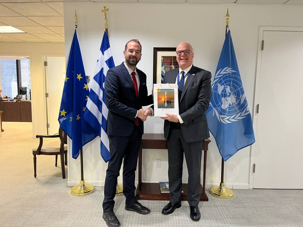 Ο Περιφερειάρχης, με την ευκαιρία της παρουσίας του στη Νέα Υόρκη, είχε την ευκαιρία να επισκεφθεί την έδρα του ΟΗΕ, να συναντηθεί με τον κ. Σέκερη και να συζητήσει μαζί του για την στρατηγική εξωστρέφειας της Περιφέρειας Δυτικής Ελλάδας, αλλά και να ενημερωθεί για την ελληνική παρουσία στον ΟΗΕ και τις δυνατότητες που υπάρχουν, ειδικά σε μία χρονική συγκυρία όπου η χώρα μας είναι μεταξύ των μελών του Συμβουλίου Ασφαλείας του διεθνούς οργανισμού.