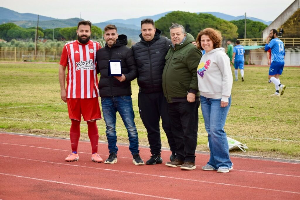 O Ολυμπιακός Ζαχάρως στο ημίχρονο του αγώνα με τον ΠΑΟ Κακοβάτου, το περασμένο Σάββατο, τίμησε τον πρώην ποδοσφαιριστή του και νυν του Κακοβάτου, Αντώνη Γκούσκο.