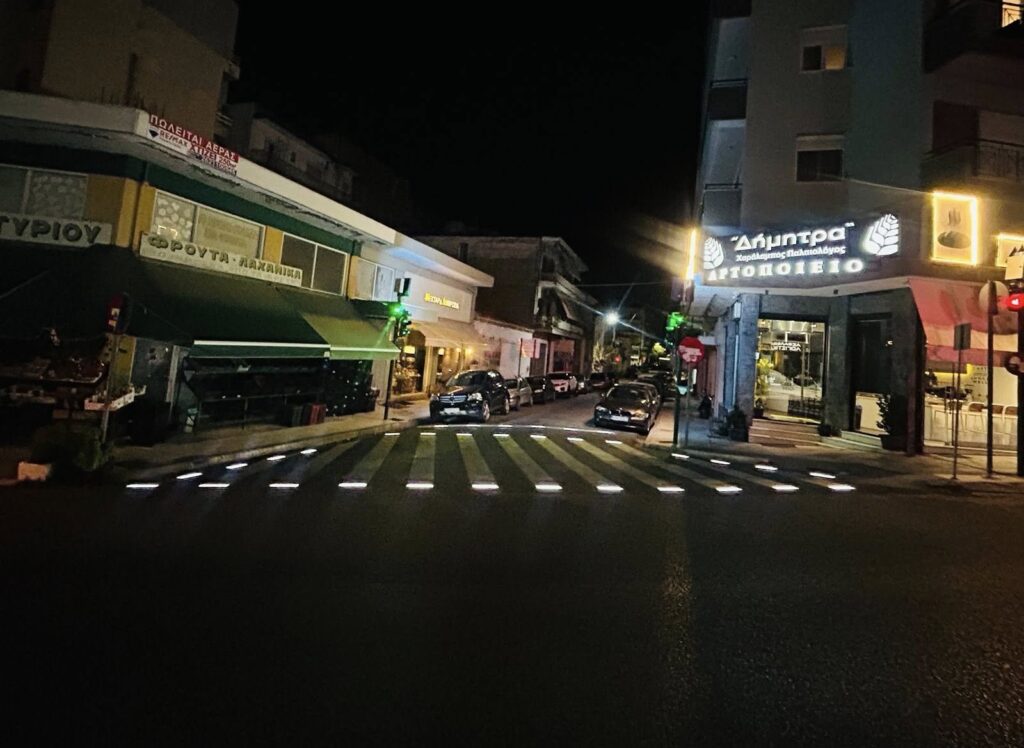 Οι πινακίδες ανάβουν ταυτόχρονα με τα LED πάνελ που είναι ενσωματωμένα στην άσφαλτο, επιτυγχάνοντας το επιθυμητό αποτέλεσμα φωτεινής σήμανσης, με αποτέλεσμα οι οδηγοί στα οχήματα να αντιλαμβάνονται καλύτερα και από μεγαλύτερη απόσταση την ύπαρξη πεζών στις διαβάσεις.