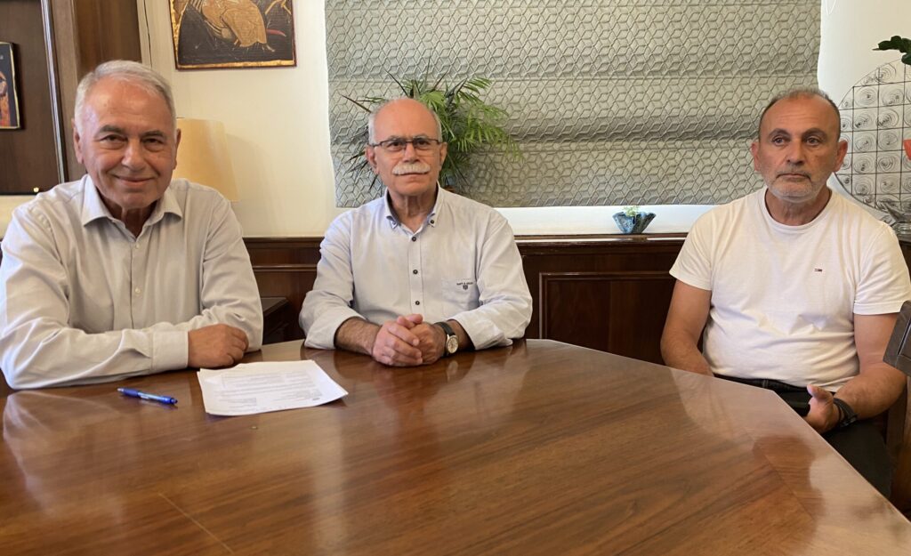 Οι διοργανωτές του τουρνουά ποδοσφαίρου κατά την χθεσινή συνέντευξη Τύπου: οΔήμαρχος Πύργου, Στάθης Καννής, ο Αντιδήμαρχος Αθλητισμού, Νώντας Κυριαζή και ο ιδιοκτήτης της ακαδημίας του Αιόλου Πύργου, Κώστας Σκαρτσιάρης.