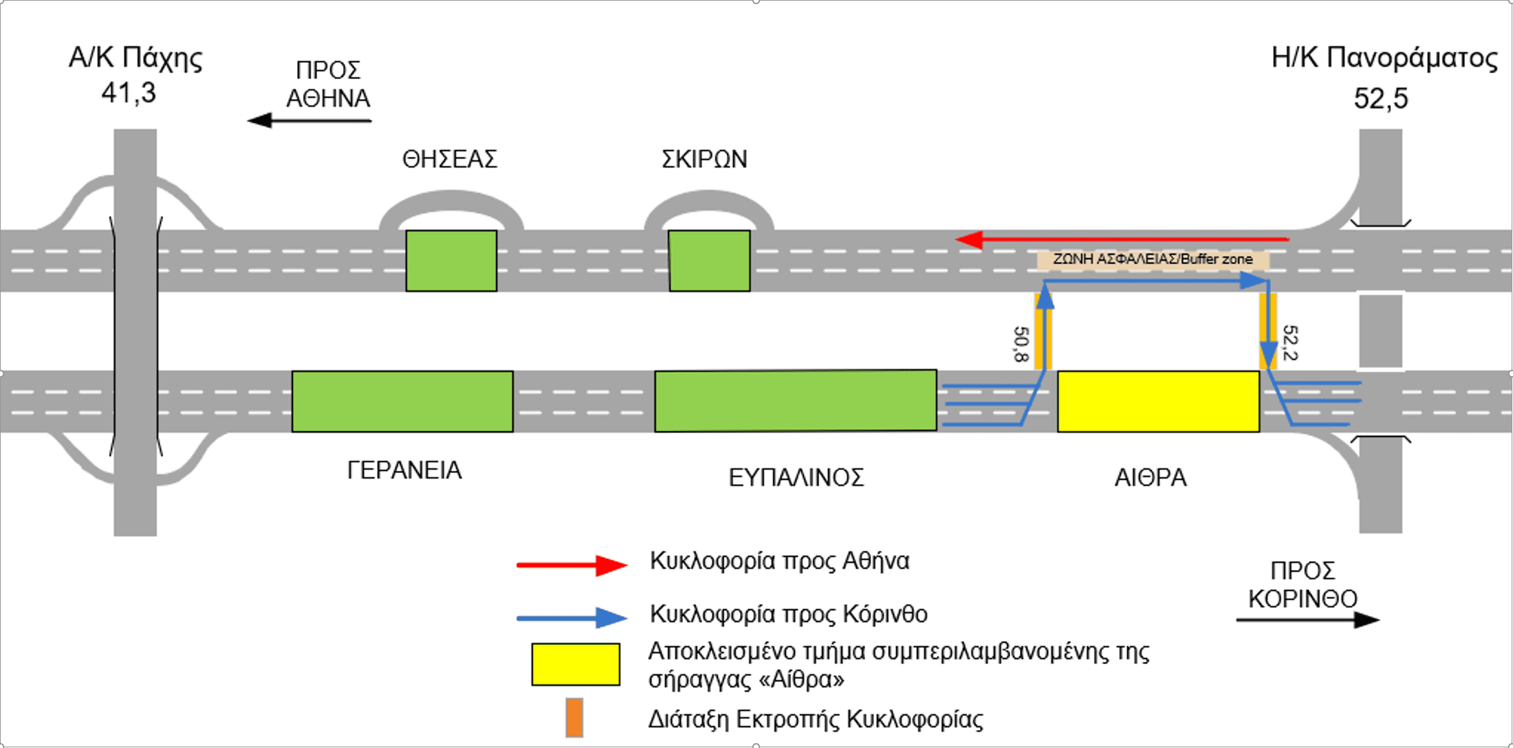 Η Ολυμπία Οδός ευχαριστεί για την κατανόηση και παρακαλεί τους οδηγούς να συμμορφώνονται προς τη σχετική εργοταξιακή σήμανση και τις υποδείξεις της Τροχαίας, καθώς και να επιδείξουν αυξημένη προσοχή κατά τη διέλευσή τους από την εν λόγω περιοχή.