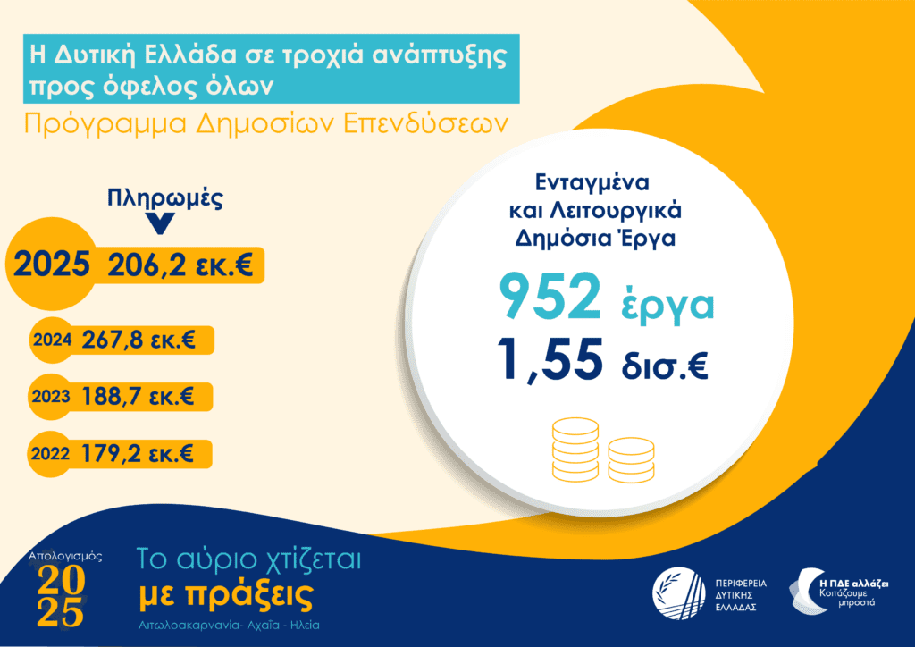 Ποσό ρεκόρ από την Περιφέρεια Δυτ. Ελλάδας στις δημόσιες επενδύσεις