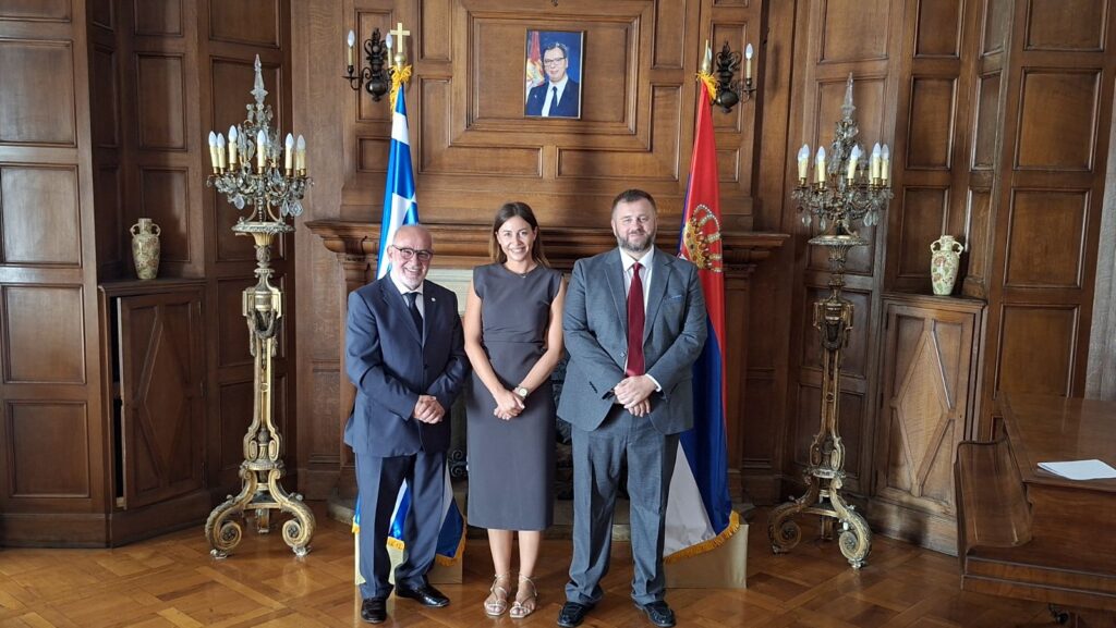 Σε κλίμα φιλίας και συνεργασίας πραγματοποιήθηκε συνάντηση των Αντιπεριφερειαρχών Τουριστικής Ανάπτυξης, Παναγιώτη Σακελλαρόπουλου και Αθλητισμού, Τάκη Αντωνόπουλου με τον Πρώτο Σύμβουλο – Πρόξενο, Dejan Mackovic της Σερβίας, στην Αθήνα.