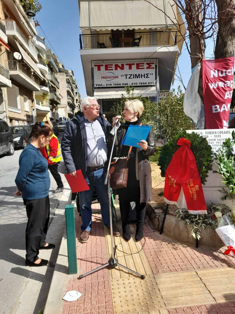 Στο πνεύμα των παραπάνω στίχων κινήθηκαν οι παρεμβάσεις στην υπαίθρια εκδήλωση μνήμης Νικηφορίδη και αντιπολεμικής εγρήγορσης, που έγινε την Πέμπτη 5 Μαρτίου 2026, ακριβώς 75 χρόνια από την δολοφονία του πρωτοπόρου αγωνιστή της Ειρήνης και του πυρηνικού αφοπλισμού.