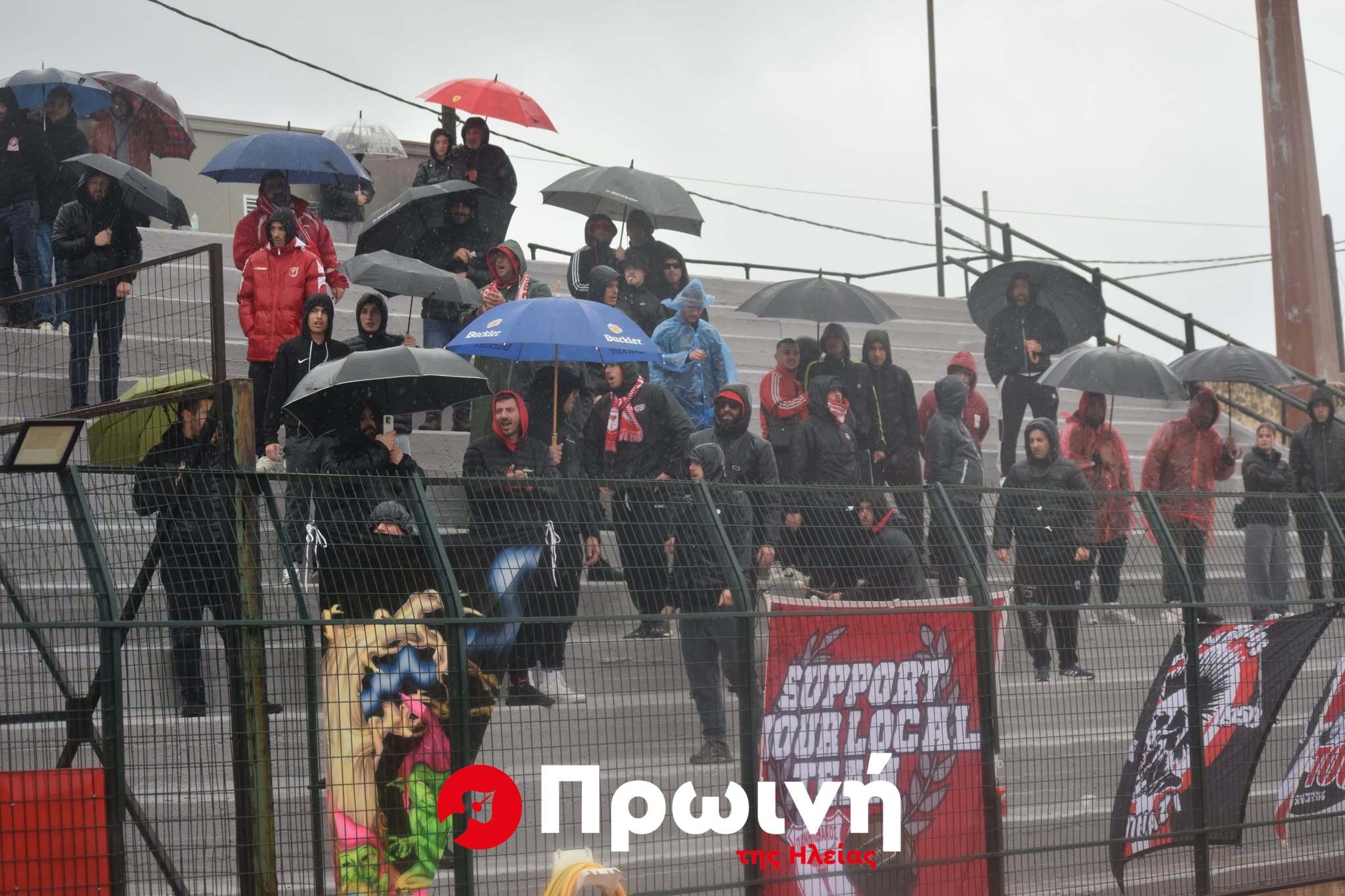 Πενήντα περίπου Red Boys βρέθηκαν στο Αίγιο και παρά τις άσχημες καιρικές συνθήκες δεν σταμάτησαν να τραγουδούν για την ομάδα.